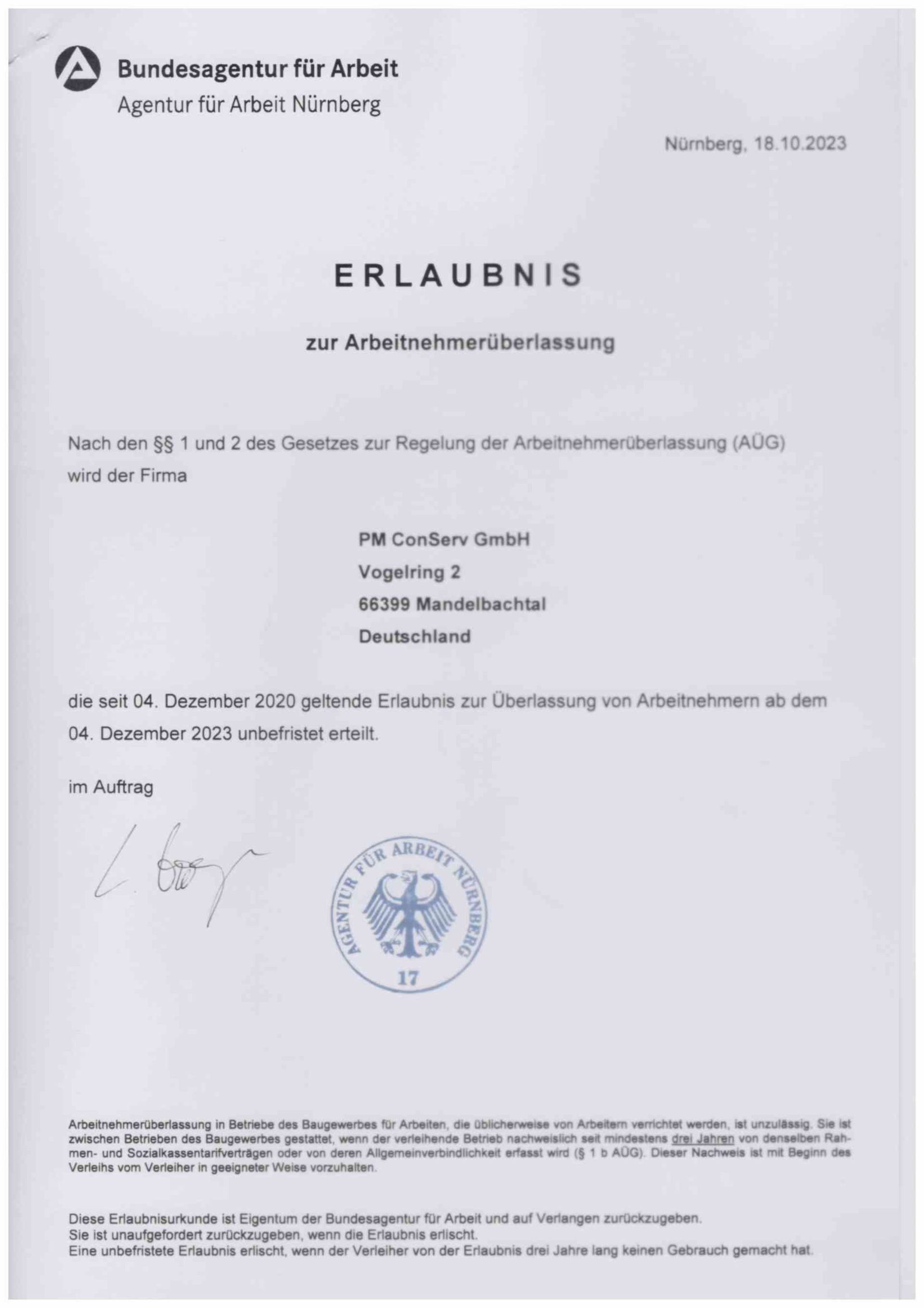 Kontaktieren Sie uns unter 06893/944018 oder senden Sie uns eine Personalanfrage an info@pm-conserv.de